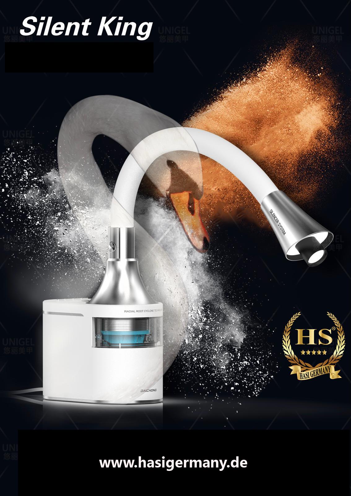 Der Schwanenhals kann genau dort gerichtet werden wo der Staub und Feinstaub entsteht. Mit der zusätzlich eingebauten LED Leuchte wird der Arbeitsbereich nochmals zusätzlich ausgeleuchtet.