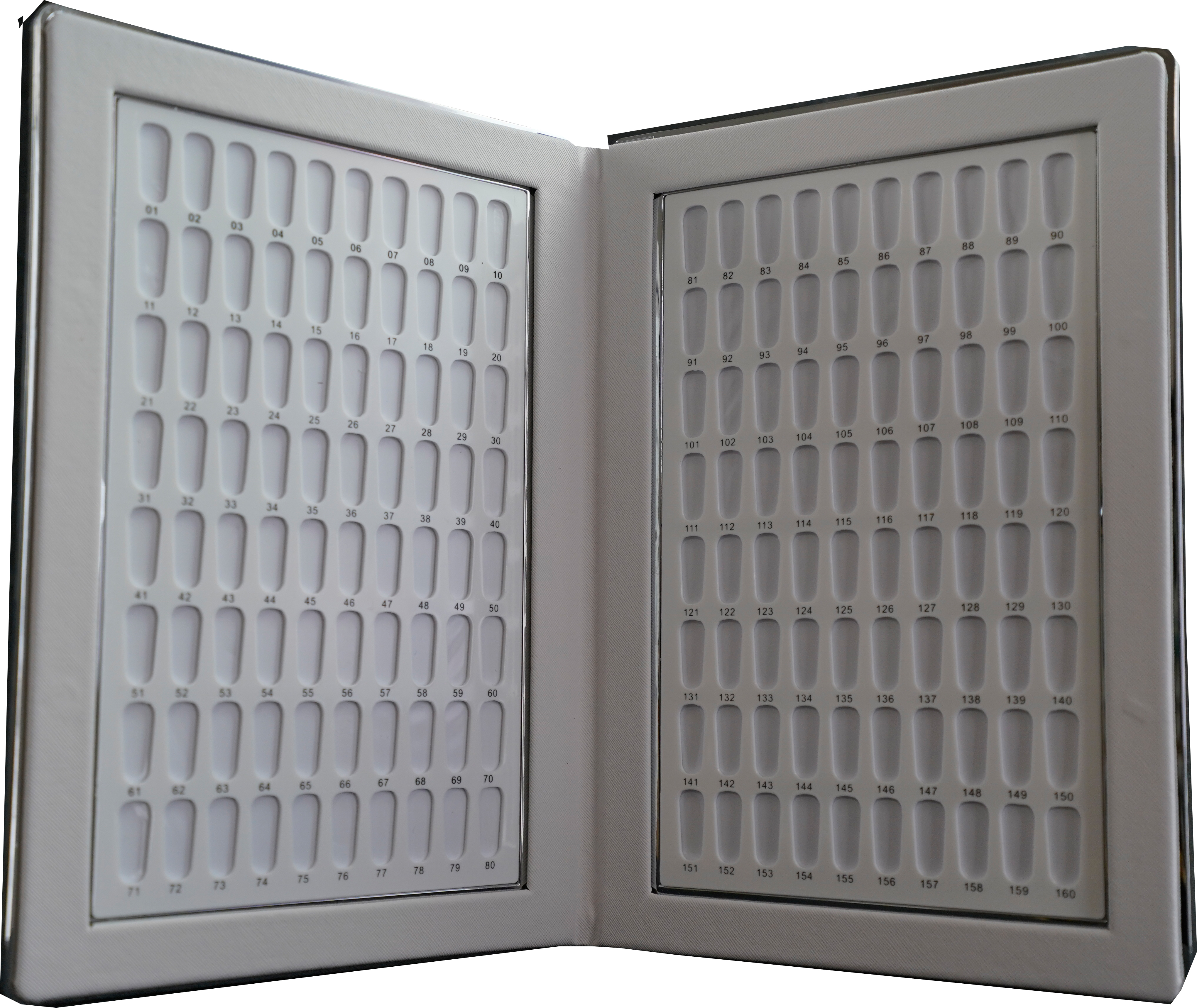 Diese tolle Art Ihre Gel-, GelPolish- oder Acrylfarben zu präsentieren wird Ihre Kunden beeindrucken. In diesem Buch haben Sie Platz für 160 Farben oder Designs.