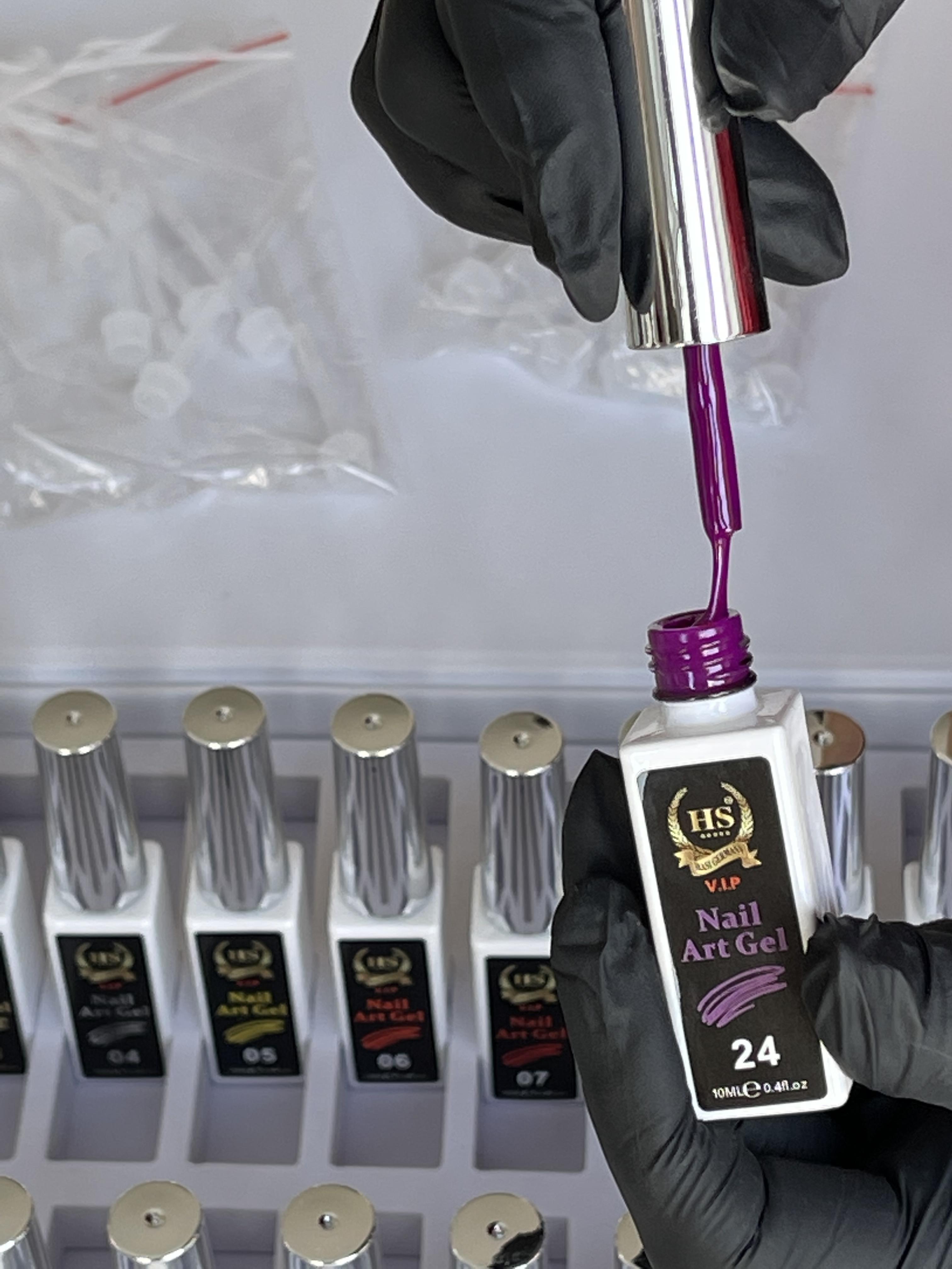 - 24 brillante Farben im 10 ml Fläschchen mit Striperbrush