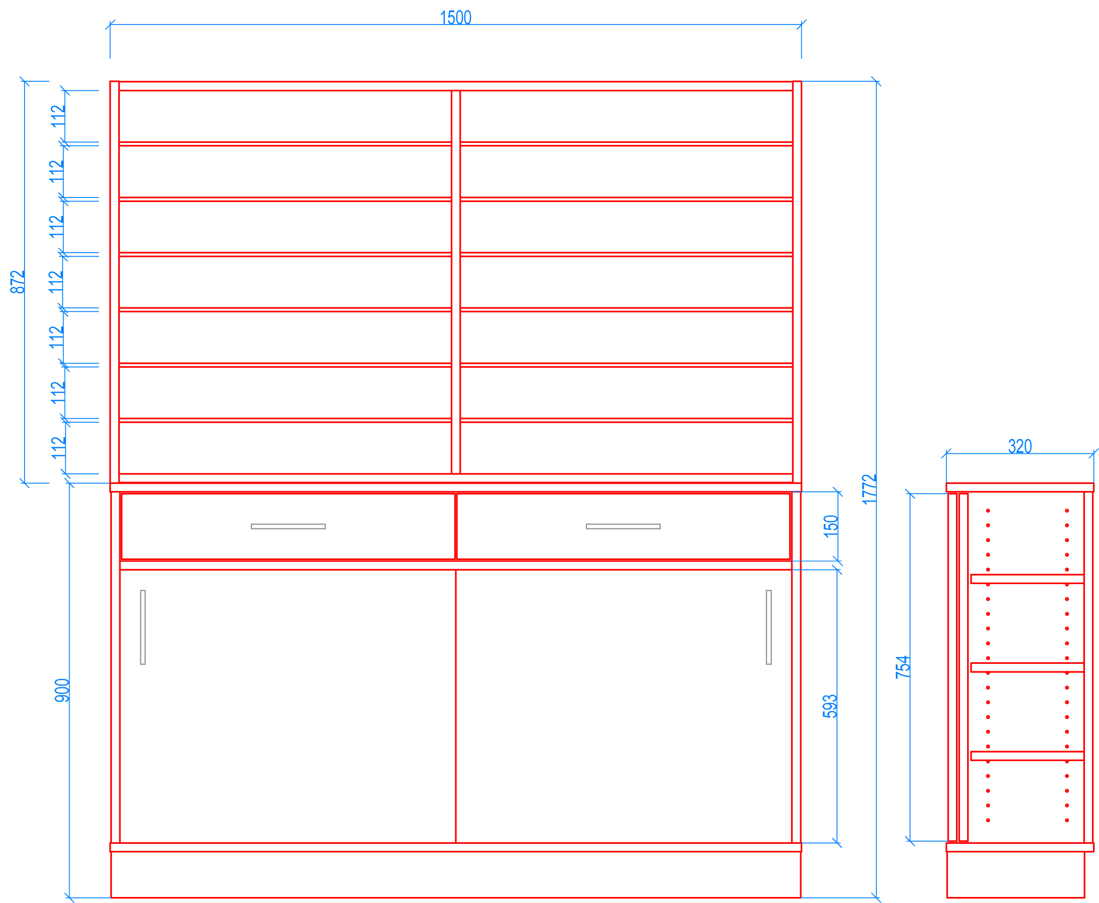 Maße Gesamt Breite 1500mm - Höhe 1772mm - Tiefe 320mm