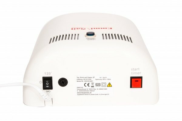 Das UV-Lichthärtungsgerät Emmi-Classic BT "weiß" ist der Klassiker unter den UV-Lichthärtungsgeräten der Marke Emmi-Nail. Das Gerät ist ideal für den unkomplizierten Einstieg in die Nagelmodellage. Einfach in der Handhabung lässt es sich auch leicht transportieren und hat eine optimale Größe. Doch nicht nur dies: Die rundum Verspiegelung in Verbindung mit unseren Emmi-Nail 9S-Röhren gewährleistet eine optimale und gleichmäßige Aushärtung Ihrer Nagelmodellage. Das 4-Röhrengerät (4 x 9 Watt) ist weiterhin mit einem 2-Minuten-Timer ausgestattet. Das Emmi-Classic BT besitzt zwei Timer-Tasten (hinten und oben). Insgesamt zeichnet sich das UV-Lichthärtungsgerät Emmi-Classic BT durch ein optimales Preis-Leistungsverhältnis aus.