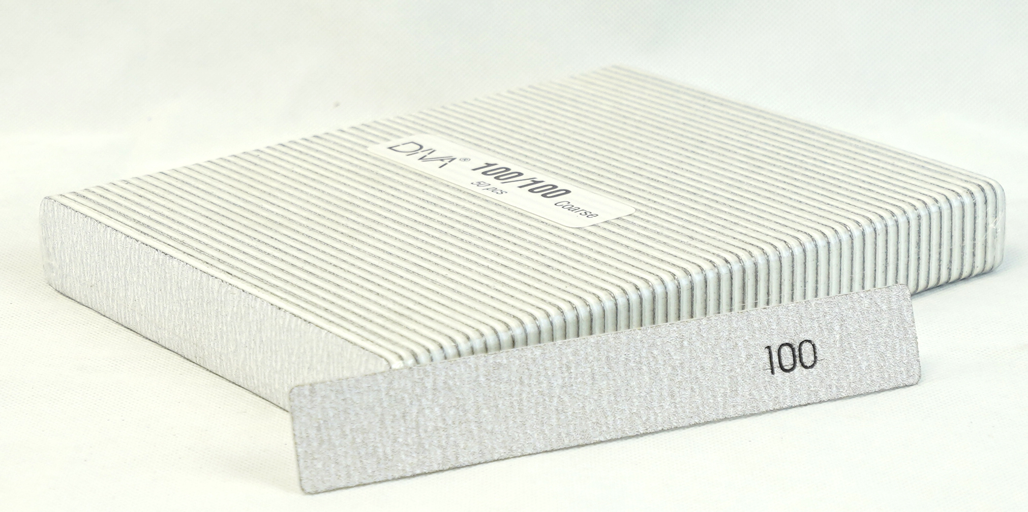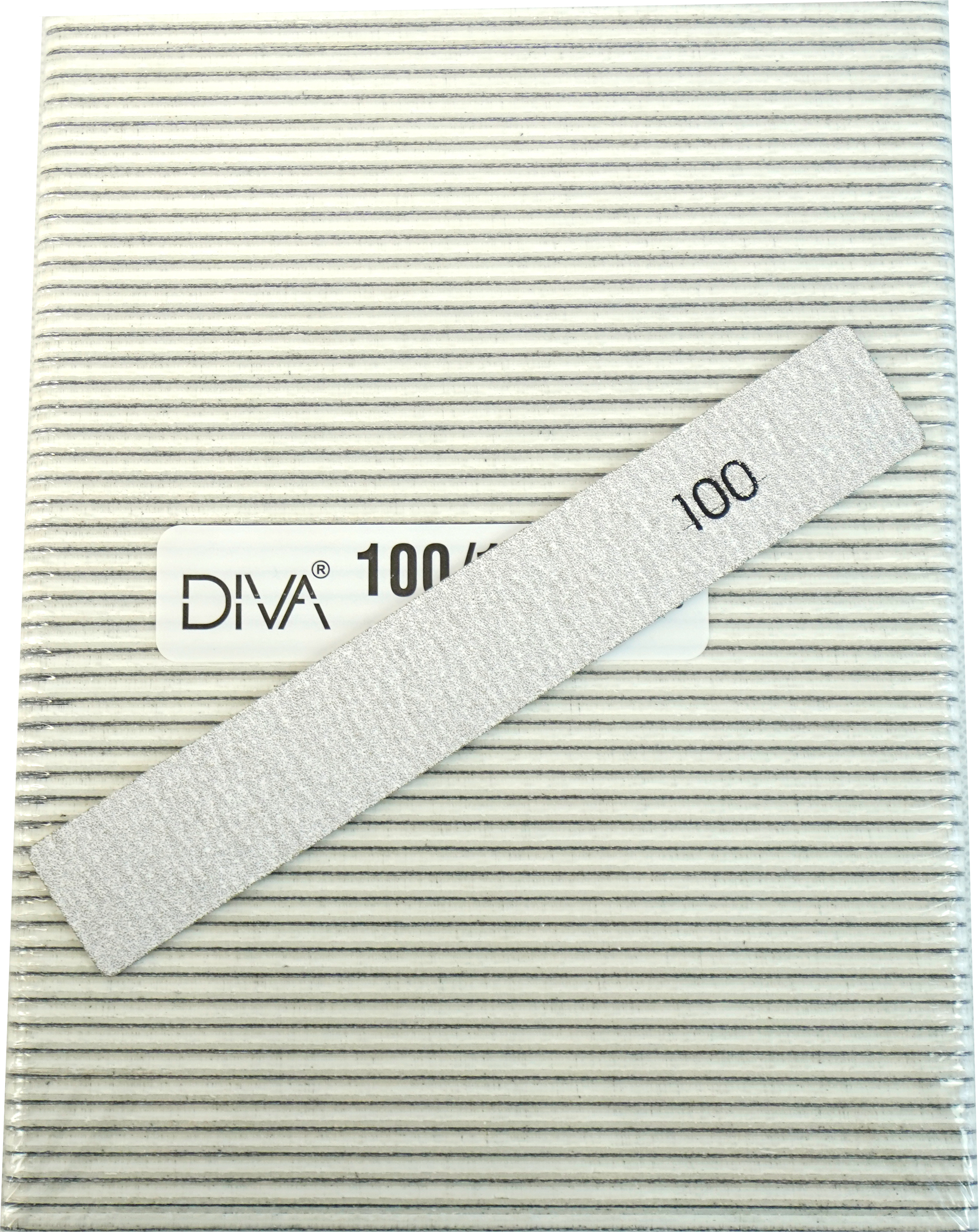 Diese Zebra-Feile, extrabreit hat beidseitig 100-er Körnung für das schnelle Formfeilen der Modellage.